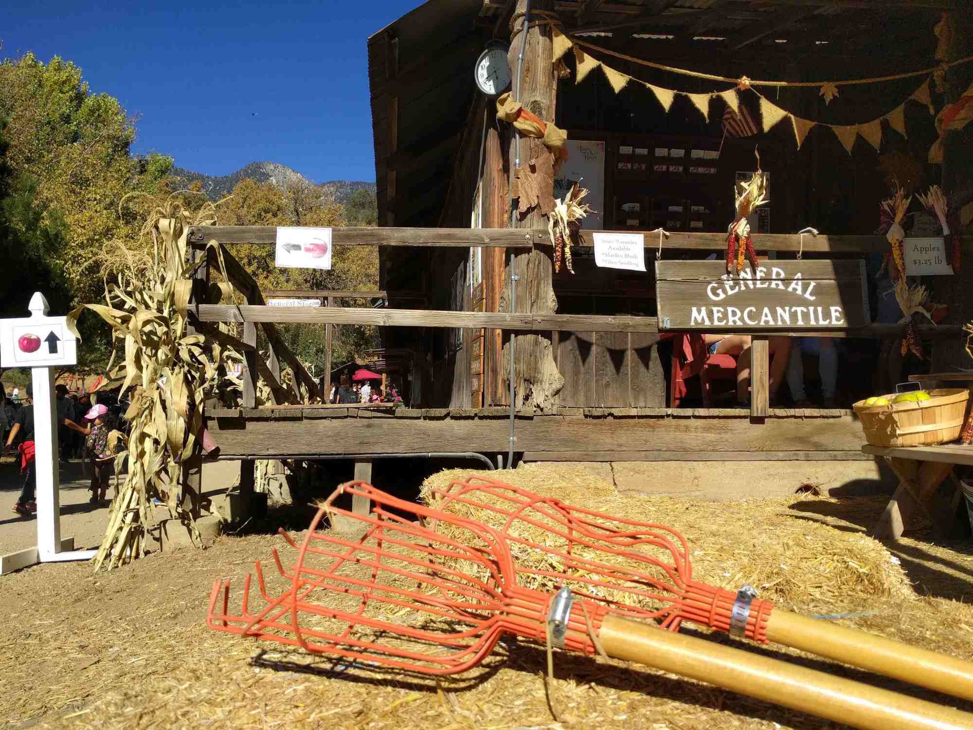 We decided to visit Riley’s Apple Farm’s main location on the far eastern edge of Oak Glen’s apple orchard area. My family and I were unable to visit Riley’s Apple Farm during our 2014 visit (we visited its calmer sister facility, de Los Rios Rancho facility, instead) because it is very popular. Riley’s Apple Farm is a very frequented working apple orchard AND a living history farm that features unique entertainment for the visiting City Slicker (think living history education, dinner theatre, group banquet facilities, extended, historically-themed overnight stays, etc.).